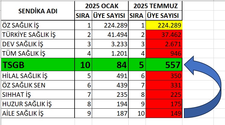 2025 Temmuz ayı üye sayıları açıklandı. 17 Nolu Sağlık ve Sosyal Hizmet İş Kolunda üye sayısını artıran tek sendika TSGB oldu. TSGB’nin aylardır yapmış olduğu işçileri bilgilendirme, işçi hakları için mücadele, işçiler adına bakanlıklarda yaptıkları mücadeleler işçiler tarafından da takdir edildi ve TSGB’yi 5. büyük sendika seviyesine çıkardılar.