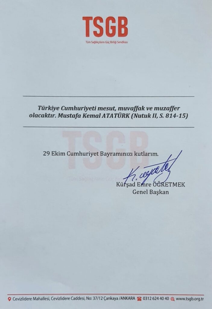 Türk Ulusu’nun Cumhuriyet Bayramı Kutlu Olsun.